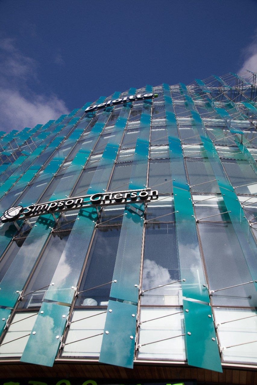กระจกด้านหน้าอาคารใช้ Guardian ClimaGuard® HP Neutral 70 ซึ่งเป็นกระจกเคลือบฉนวนกันความร้อน low-E ที่ทนทานสูง สามารถช่วยให้ใช้พลังงานอย่างมีประสิทธิภาพและมีความใส ทั้งยังช่วยให้ผู้แปรรูปกระจกอย่าง Metro Performance Glass ใช้งานได้อย่างอเนกประสงค์ในแง่การแปรรูปกระจก นอกจากกระจกจะขุ่นและสะท้อนแสงน้อยลงแล้ว ClimaGuard® Neutral 70 ยังผสานเอาฉนวนความร้อนและการให้ร่มเงาจากแสงแดดตลอดทั้งปี จึงช่วยลดปริมาณไฟฟ้าที่อาคารใช้ในระบบทำความร้อนและระบบปรับอากาศ