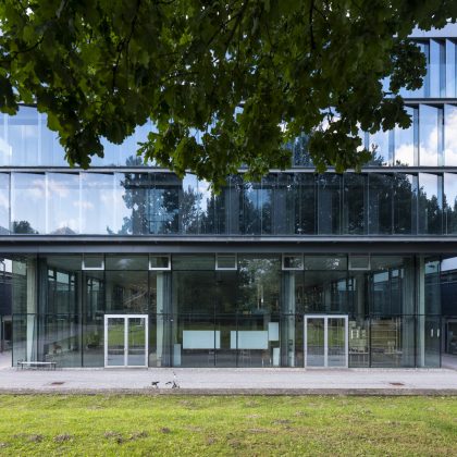 Díky důmyslnému strukturálnímu zasklení vzniká vizuálně výrazná a estetická stavba, v níž se ze všech stran zrcadlí okolí budovy.