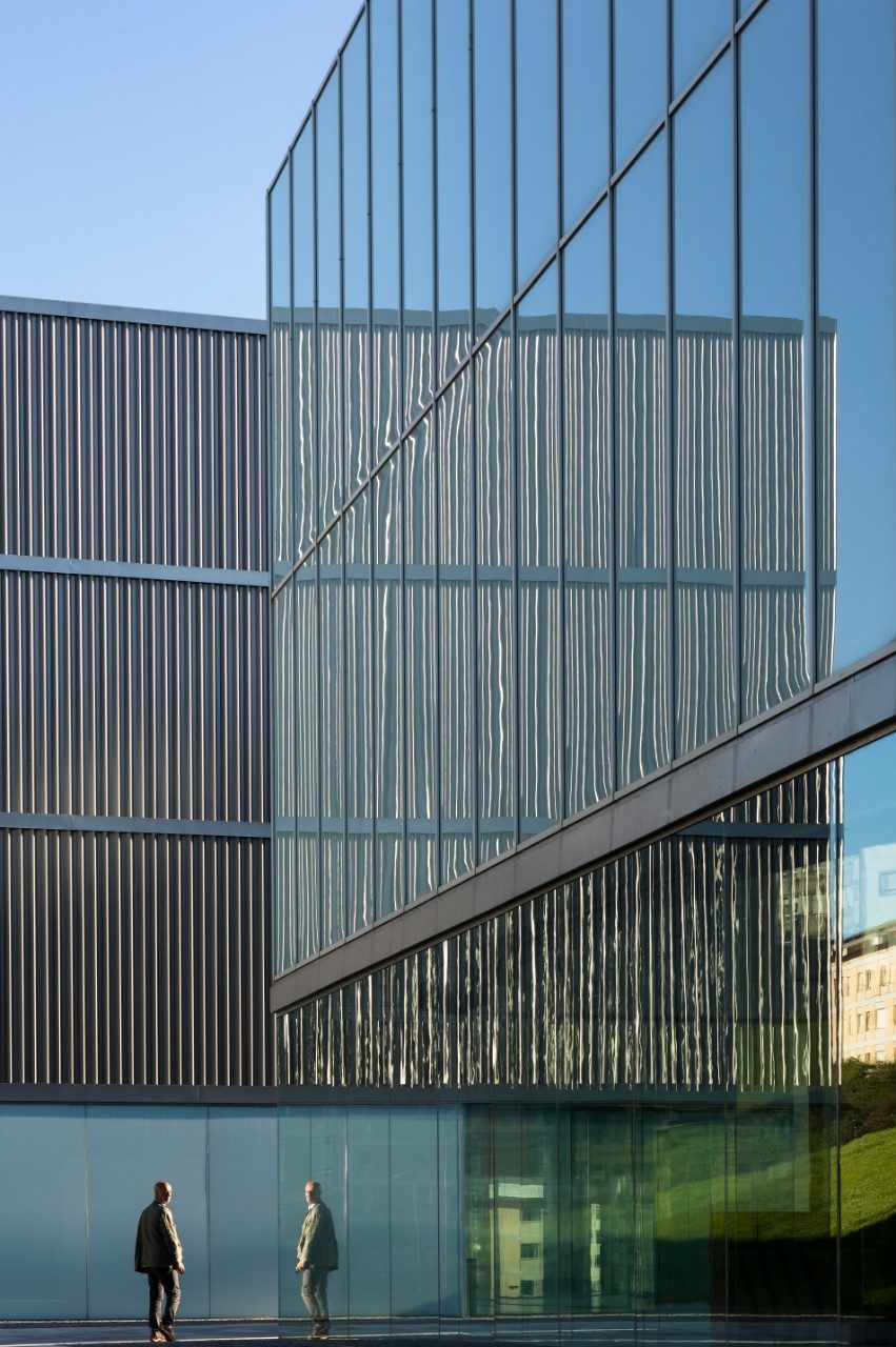Díky důmyslnému strukturálnímu zasklení vzniká vizuálně výrazná a estetická stavba, v níž se ze všech stran zrcadlí okolí budovy.
