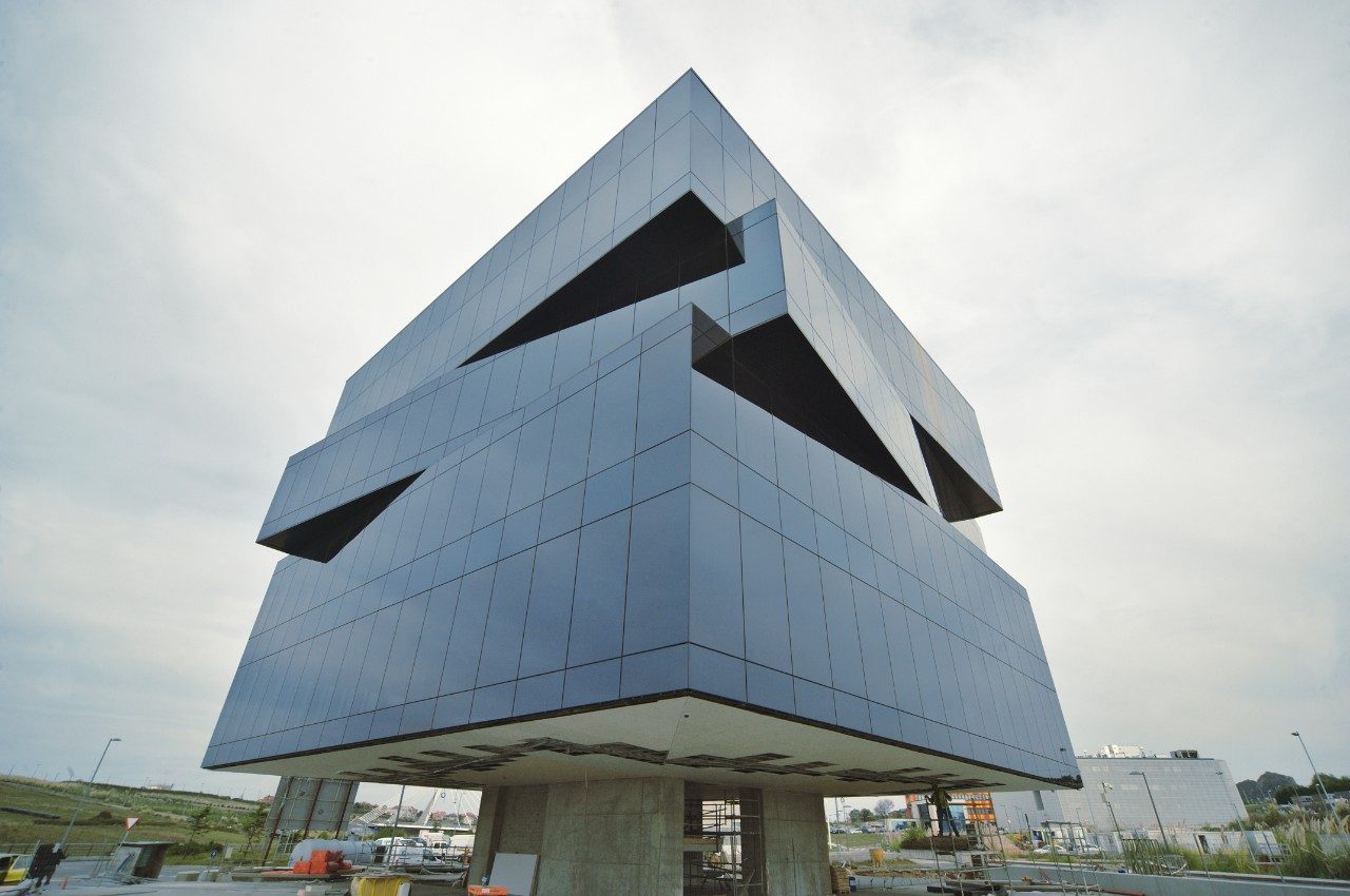 Vnější podoba budovy je černá skleněná krychle, která vypadá jako „Rubikova kostka®“. Design a koncepce fasády určuje estetickou hodnotu budovy. Musí splňovat nejen umělecké aspekty, ale také požadavky na technické parametry, jako je komfort, úspora energie, bezpečnost a konstrukční stabilita. Zavěšené fasády splňují všechny tyto požadavky, včetně své nepopiratelné dekorativní hodnoty, přenášející do budovy osobitost a image modernosti a inovací.