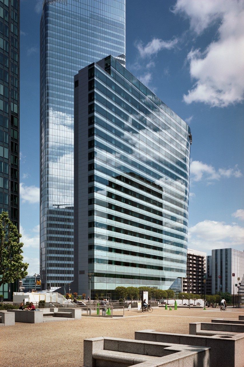 Budova se vyznačuje ostrou architektonickou identitou a moderním vzhledem. Její rozměry a tvar pomáhají odlišit hotel od okolních kancelářských věží. Budova ve tvaru ostří nože staví na kontrastních materiálech: sklo na fasádě na jižní straně promenády a kovové balotinované panely na straně hlavní ulice. Ladná zakřivená jižní fasáda končí na přídi s nakloněným okrajem vyčnívajícím směrem k Paříži. Skleněná fasáda je viditelná ve všech pokojích, kde okna pokrývají celou šířku a otevírají se směrem nahoru k fasádě. Interiéry jsou tak úžasně světlé a nabízí nádherný výhled na horizont.