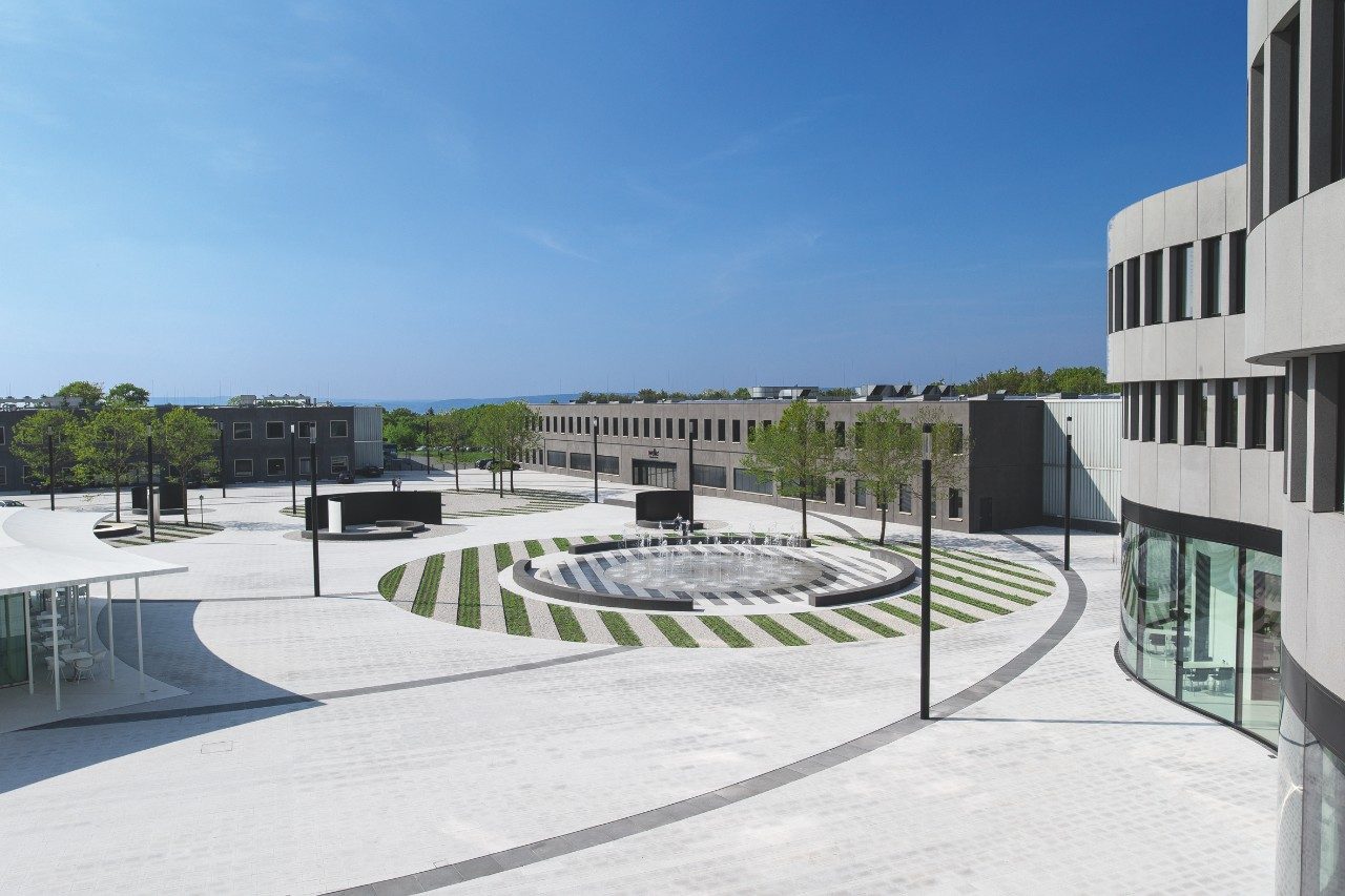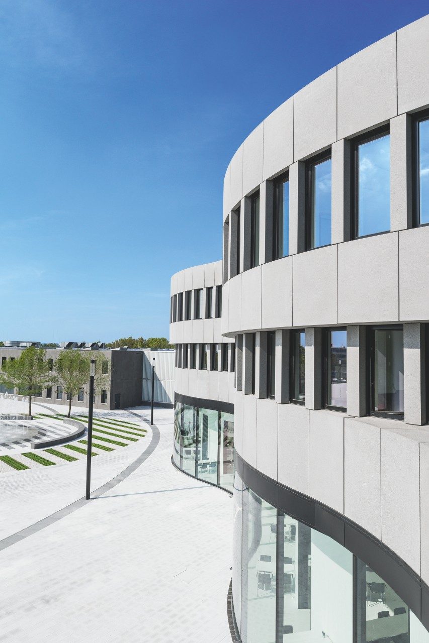 Pro fasádu z ohýbaného skla bylo vybráno sklo Guardian SunGuard SuperNeutral™ 70/41. Díky nízkému solárnímu faktoru 41 % a propustnosti světla 70 % poskytuje sklo SN 70/41 ideální rovnováhu mezi regulací slunečního světla, propustností světla a tepelnou izolací, což zvyšuje pohodlí zaměstnanců a návštěvníků.