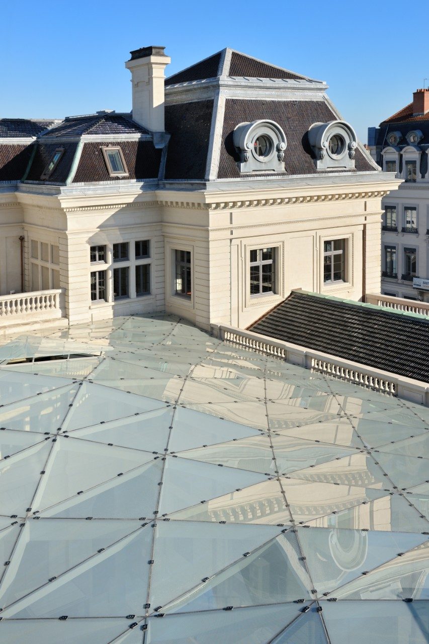 Společnost Guardian Glass byla vybrána pro téměř všechny části budov, zejména pro Canopée (světlík) a dvouplášťové fasády budovy. Světlík Canopée se sklem Guardian SunGuard® SN 70/37 Ultra hledí na vnitřní nádvoří a osvětluje rekonstruované dílo, zatímco na okna a fasády hotelu a butiků byl použit povlak Guardian SunGuard® HD Neutral 67, který umožňuje ideální rovnováhu mezi propustností světla a solárním faktorem.