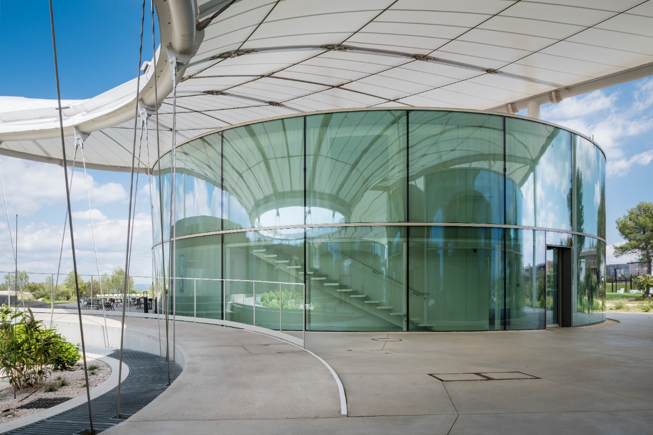 Ohýbané sklo v salónku a amfiteátru je Guardian SunGuard SuperNeutral™ (SN 70/37), krásné, neutrální, průhledné sklo s nízkou odrazivostí, jednotnou barvou, vysokou solární ochranou a vysokou propustností světla.