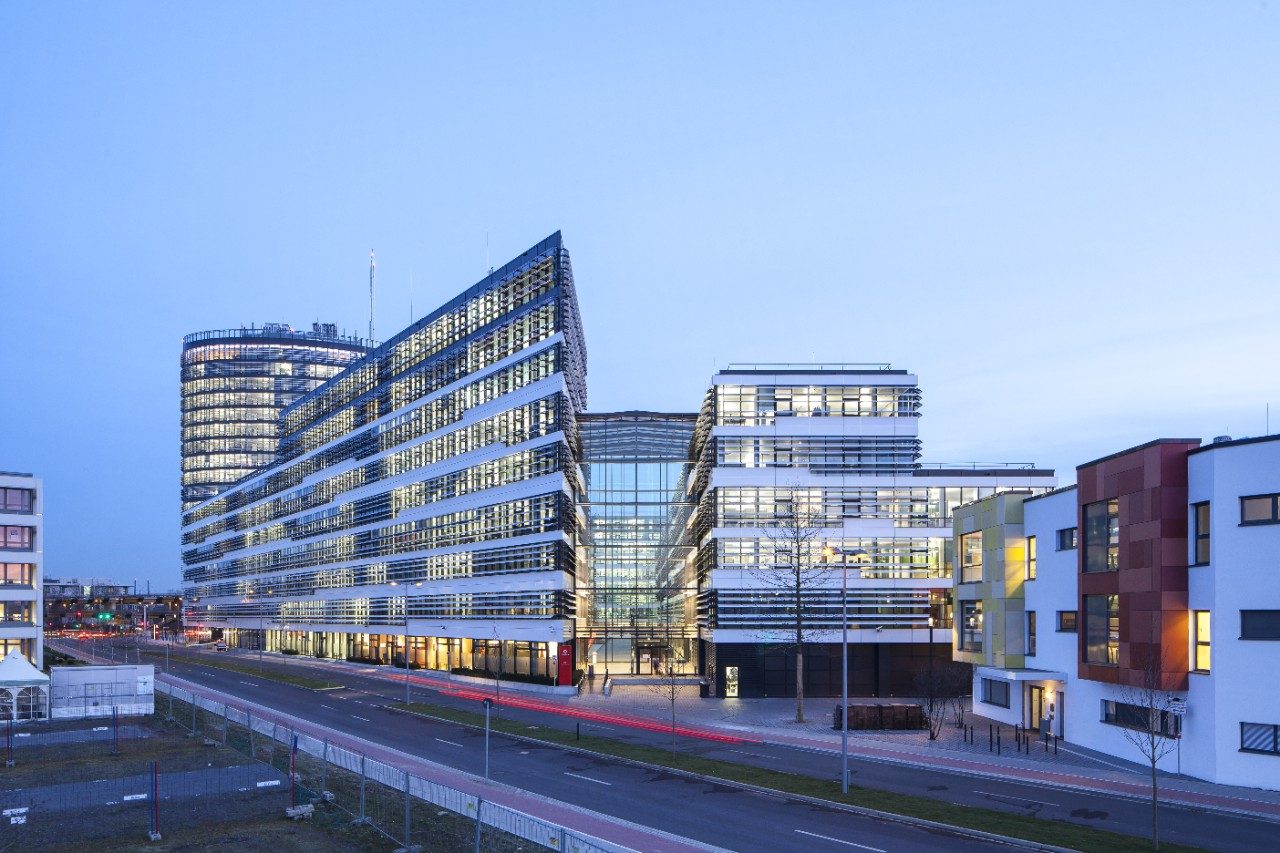 Kampus společnosti Vodafone v německém Düsseldorfu je „zelenou budovou", která je opláštěna systémem Guardian SunGuard® SuperNeutral™ 62/34. Projekt získal certifikaci LEED Platinum.
