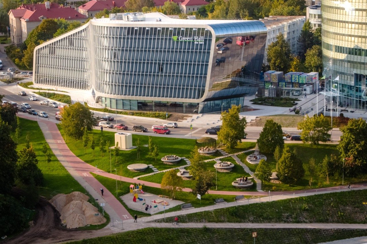 Az Arrow Architects és az UAB Archinova által tervezett Green Hall 2 egy 8566 négyzetméteres irodaépület, amely a folyó mentén elterülő gyönyörű zöld tájra néz Vilnius szívében. Tulajdonosa egy első osztályú épületre vágyott, amely összhangban van a természettel.