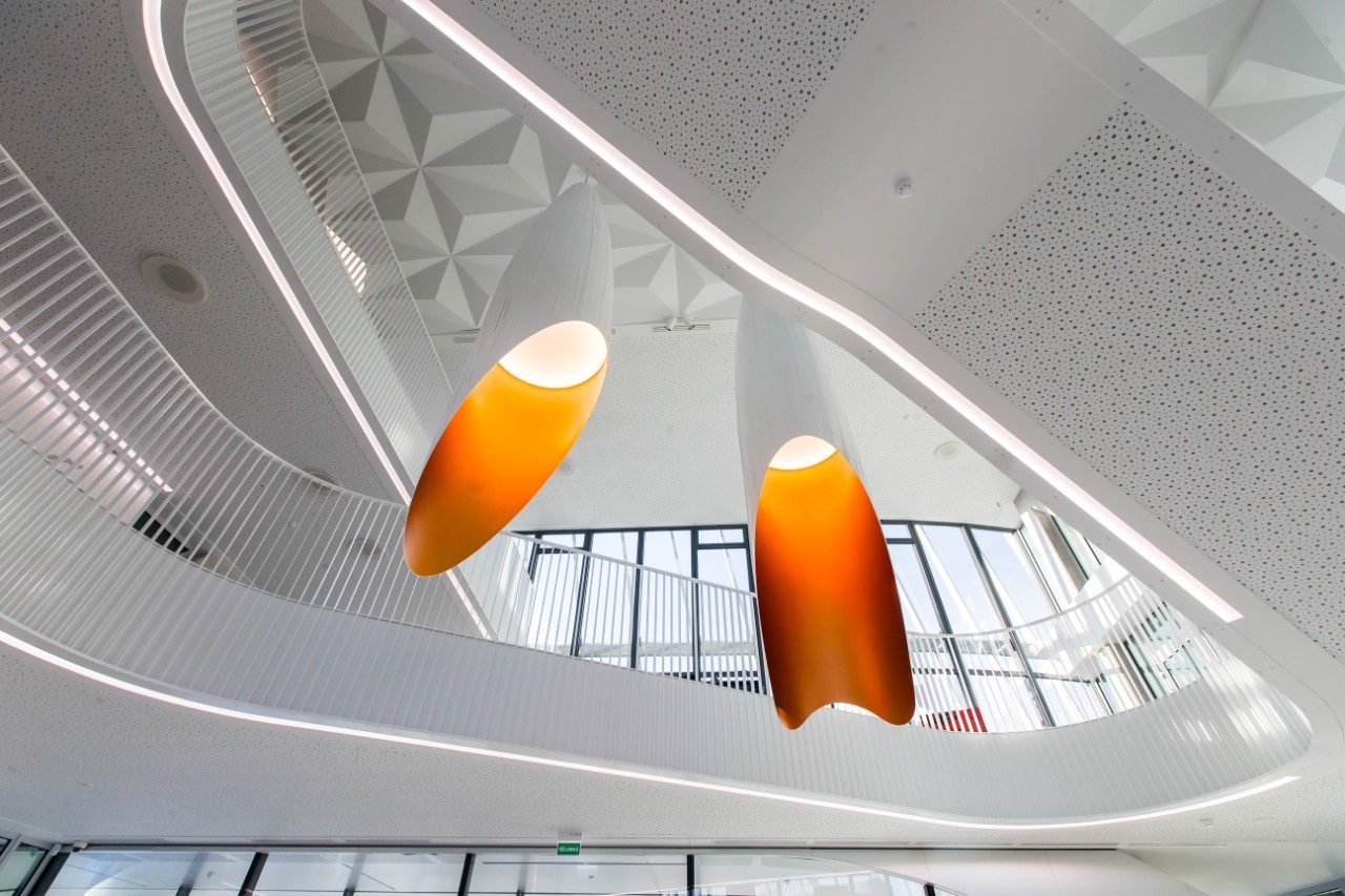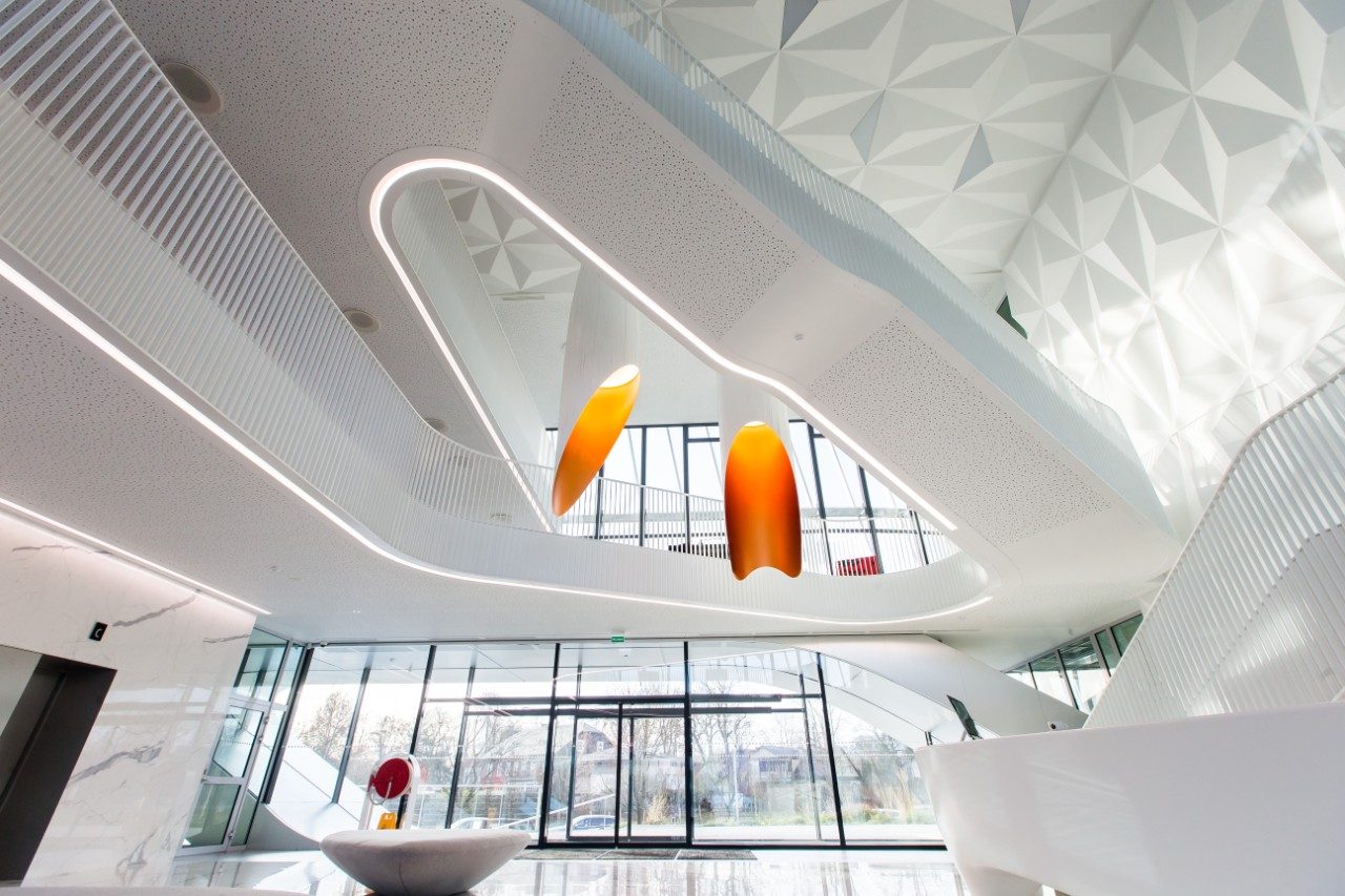 Az új épület markáns formája harmonikusan illeszkedik a környezetébe, dinamikussá teszi az épület tömegét, és megszünteti a helyszín jelentette korlátozásokat.