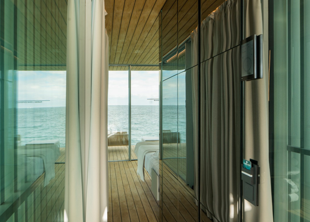 A lebegő építményhez háromrétegű Guardian-üveget használtak, amely hozzájárul a rendkívüli energiamegtakarításhoz, biztonsághoz és hangszigeteléshez. A külső felületen Guardian SunGuard® SN 70/35 HT szelektív üveget használtak, amelyre Guardian ExtraClear® került középső üvegrétegként, a belső felületen pedig Guardian ClimaGuard® Premium2 laminált üveg található, amely tovább fokozza a biztonságot és az energiahatékonyságot.
