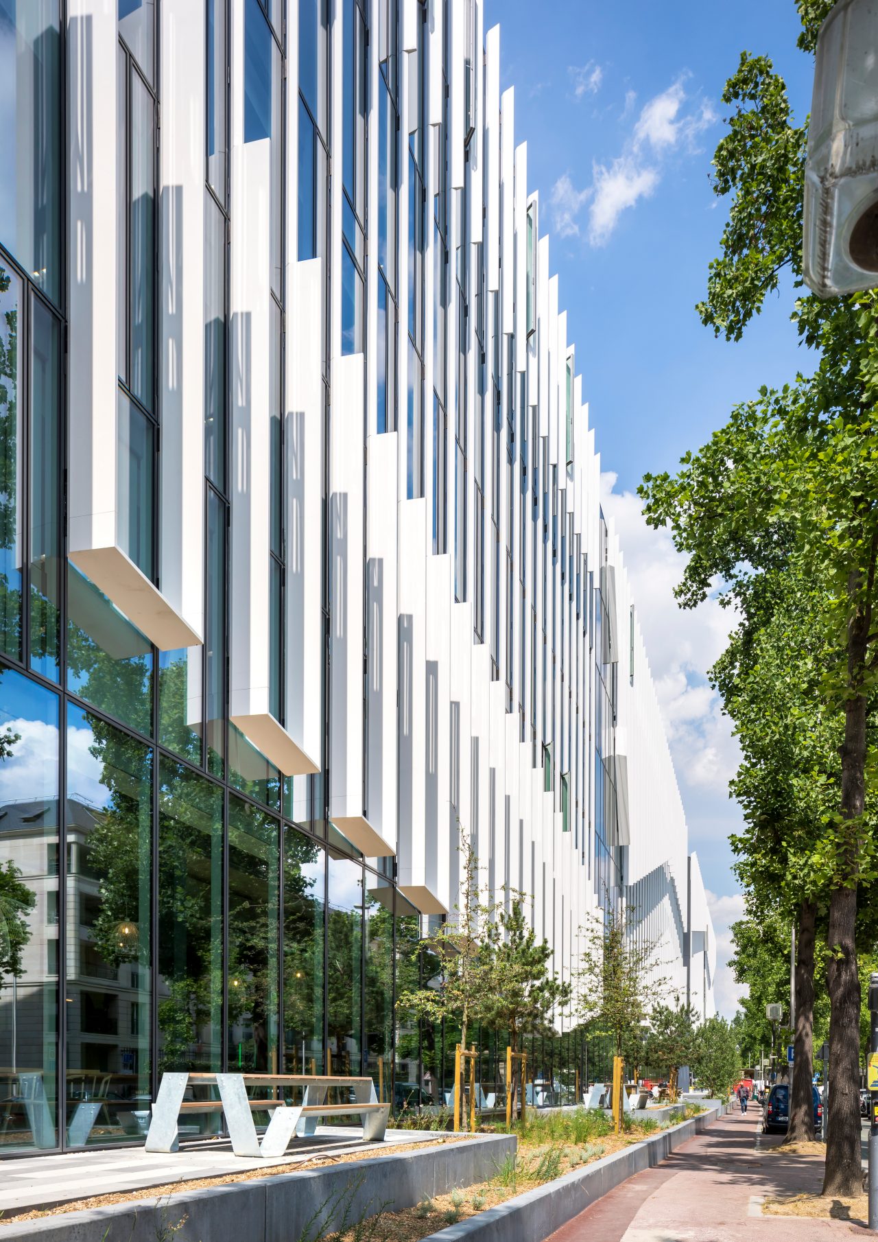 A nagy, üvegezett homlokzat átláthatóságot biztosít, a természetes fény pedig visszatükröződik a bordákról, és bejut a belső munkaterületekre. Az épület ezenkívül fenntarthatóságból is jelesre vizsgázott, két tanúsítvánnyal is rendelkezik: a BREEAM „Excellent” és a HQE „Exceptional” minősítéssel. A megújuló energiaforrásokat előnyben részesítő SHIFT geotermikus energiát használ, hogy csökkentse az energiafogyasztását.