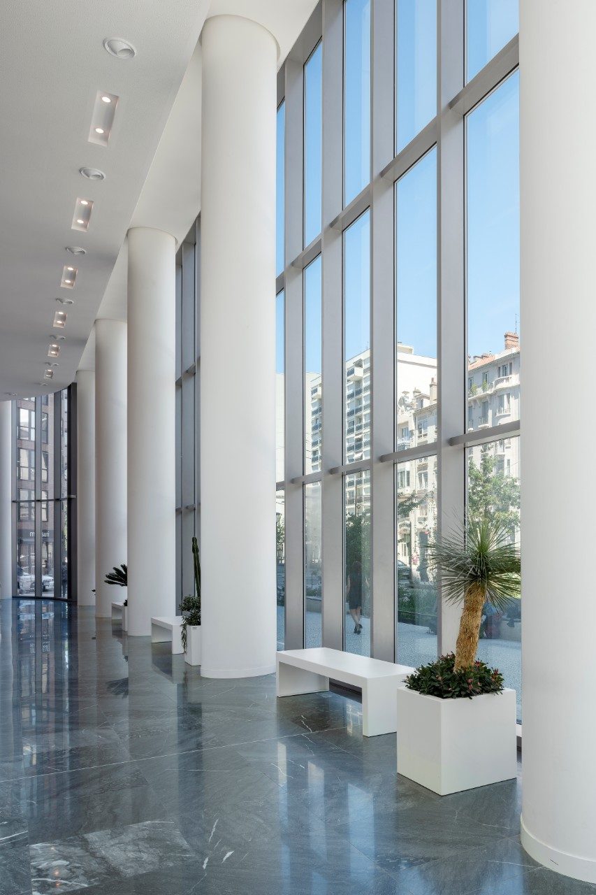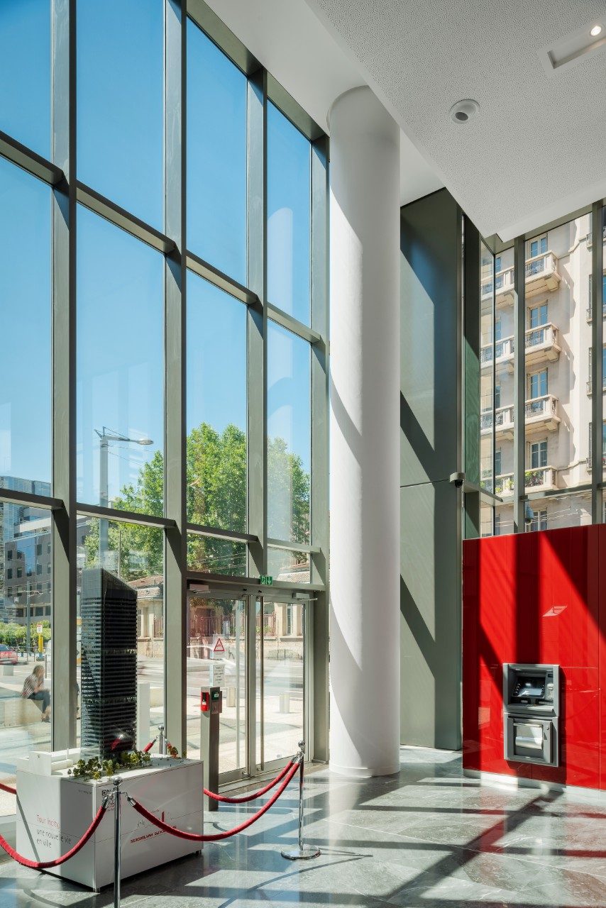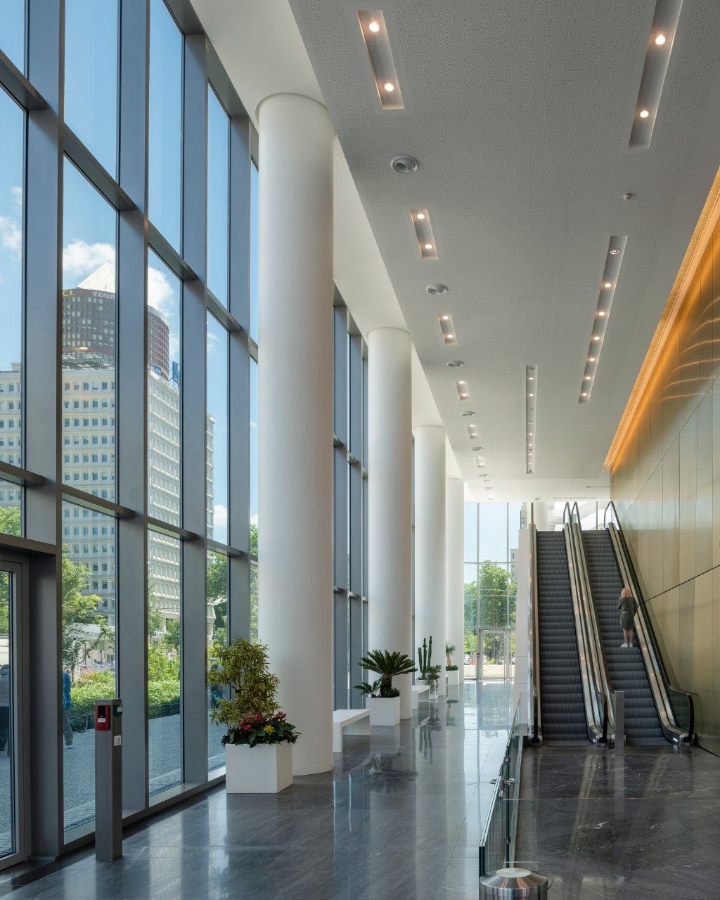 Az ötletes strukturális üvegezésnek köszönhetően az épület esztétikus megjelenésű, és minden oldala visszatükrözi a környezetét.