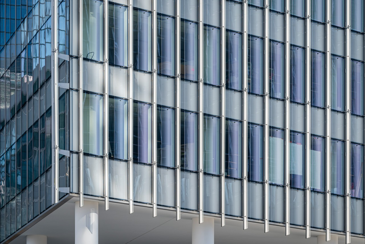 Az ötletes strukturális üvegezésnek köszönhetően az épület esztétikus megjelenésű, és minden oldala visszatükrözi a környezetét.