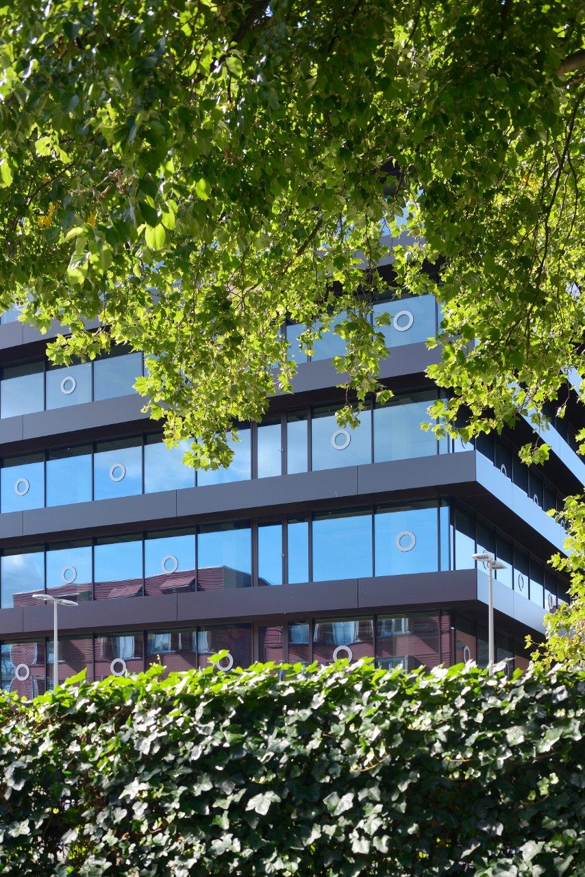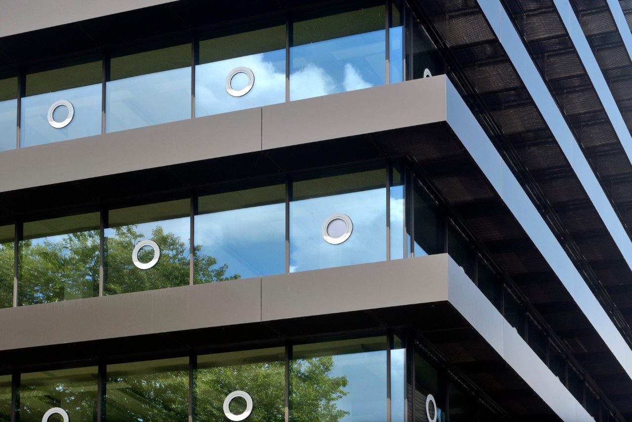 Pentru fațada complet vitrată a fost aleasă sticla Guardian SunGuard® eXtra Selective (SNX) 60. Această sticlă pentru control solar cu triplu strat de argint ajută la reducerea costurilor energetice prin diminuarea cererii de iluminat artificial, aer condiționat și încălzire. Sticla SNX 60 are un aspect extrem de plăcut, uniform, neutru și transparent – indiferent de unghiul de vizualizare. Reflexia colorată internă a fost optimizată, adăugând un ton mult mai neutru sticlei atunci când este privită din interiorul clădirii. Sticla SNX 60 lasă să pătrundă 60% din lumina diurnă naturală în combinație cu doar 29% din căldura solară, fiind unul dintre produsele cu cea mai mare selectivitate (raport de transmisie a luminii și factor solar) de pe piață.