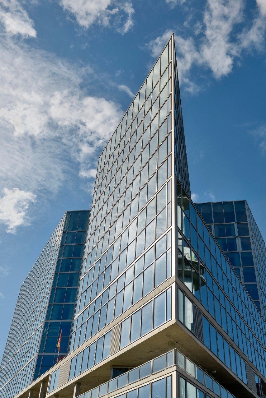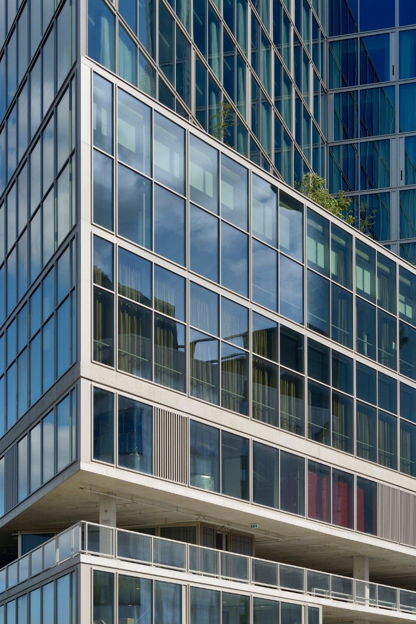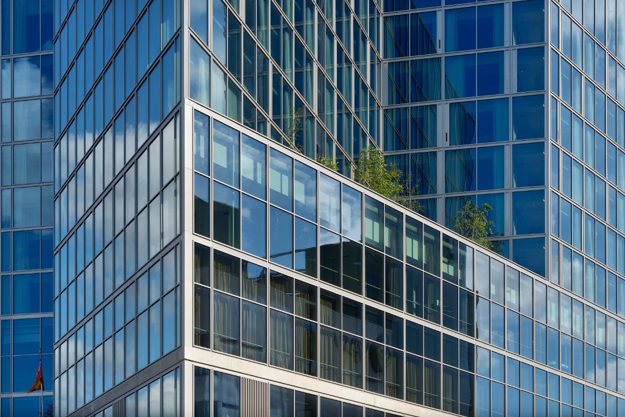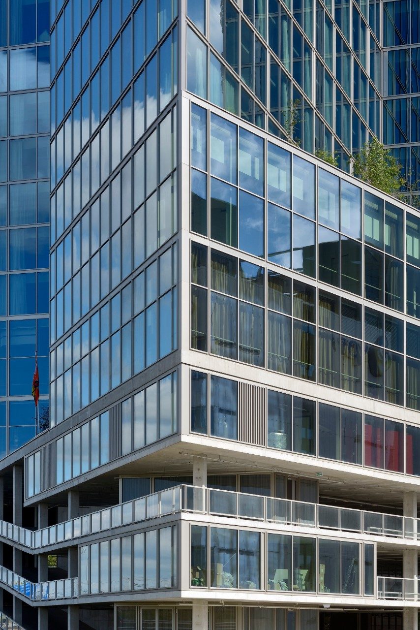 Datorită vitrajului structural inteligent, aspectul este atractiv vizual, reflectând împrejurimile clădirii pe toate laturile.