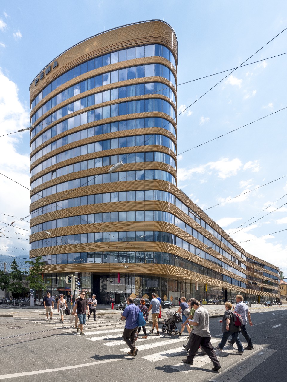 Proiectată de arhitecții vienezi Henke și Schreieck, „Headline” a fost prima clădire înaltă construită în centrul orașului Innsbruck din Austria după Jocurile Olimpice din 1976. Moderna și plăcuta clădire comercială și de birouri este situată lângă gara centrală, transformând aspectul cartierului. Clădirea marchează intrarea estică în centrul orașului, integrându-se perfect în peisajul urban.