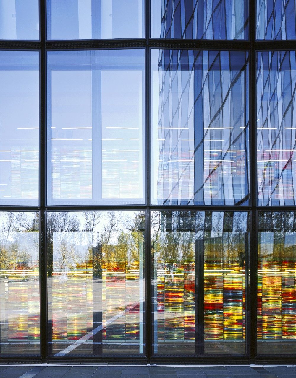 Datorită vitrajului structural inteligent, aspectul este atractiv vizual, reflectând împrejurimile clădirii pe toate laturile.