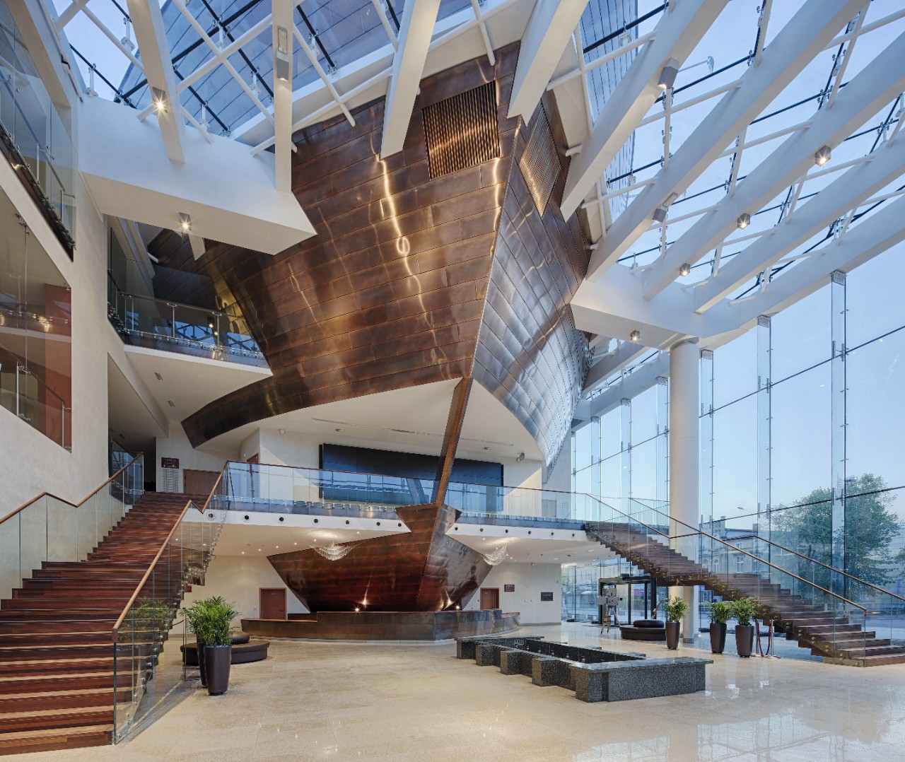 O mare parte a clădirii, inclusiv sala de concerte, foaierul și cafeneaua sunt vitrate pentru a asigura un confort termic optim și multă lumină naturală pentru vizitatori și personal. Proprietarul clădirii a ales sticla peliculizată pentru control solar Guardian SunGuard SN 70/41, care oferă o transparență ridicată și un aspect neutru, reflectorizant.